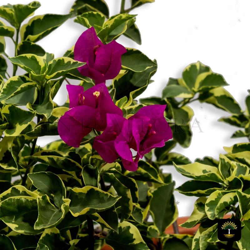 Variegated Foliage: Bougainvillea glabra Variegata boasts leaves with a striking combination of green and creamy white, adding a touch of elegance and visual interest.