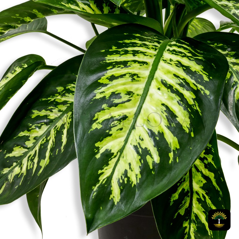 Variegated Foliage: The Dieffenbachia Seguine showcases large, broad leaves adorned with variegated patterns of green and cream, creating an eye-catching and sophisticated appearance.